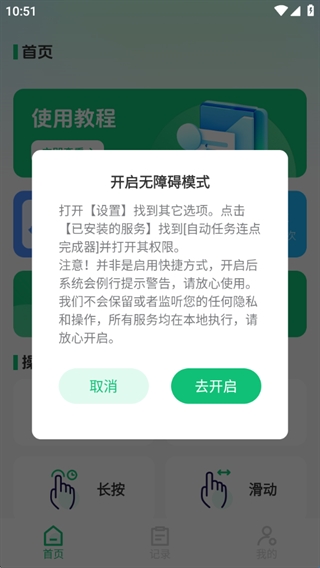 3、开启自动点击手势设置的时候需要先打开悬浮窗和开启无障碍模式;