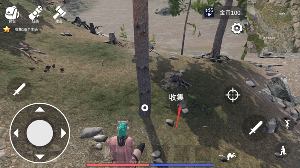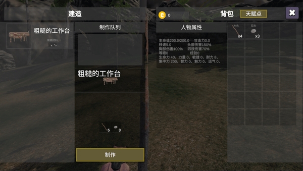 2、制作武器等物品需要依赖工作台,收集完材料后就可以开始建造工作台。