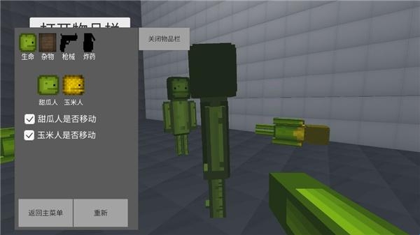 2、自由创造建筑,无限制的生成物品,还可以操控甜瓜人进行活动。