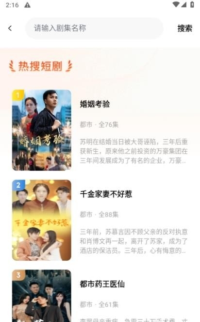 3.搜索与收藏功能:支持一键搜索功能,可通过剧名.主演.标签等多条件快速定位想看的短剧;还能自动记录观看进度,方便用户收藏喜欢的短剧并随时回看。