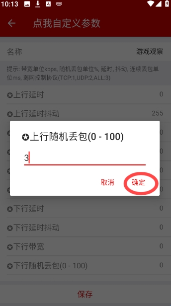 自定义设置好相关的参数,例如上行随机丢包等,点击“确定”。