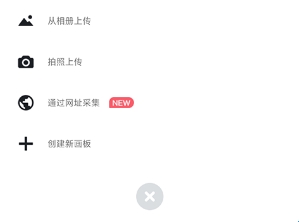 2、我们现在可以看见在下方弹出一个选择框,其中有从相册上传、拍照上传、通过网址采集以及创建新画板,前3个是我们创建好画板后面要做的,我们就先点击创建新画板吧。