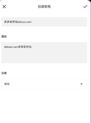 3、点击后我们就正常的填写画板的标题、描述以及画板的分类,填写好点击右上角的√就大功告成了。