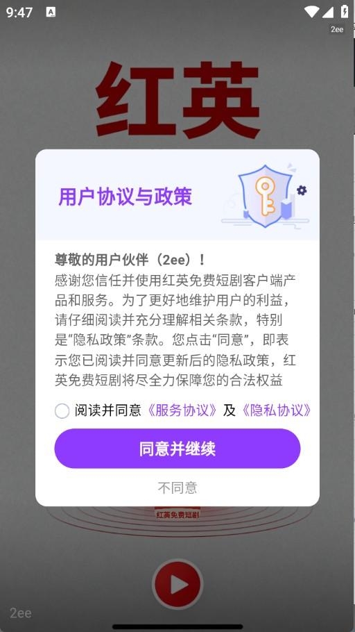 1、首先在本站下载红英免费短剧,点击同意隐私政策与用户协议。
