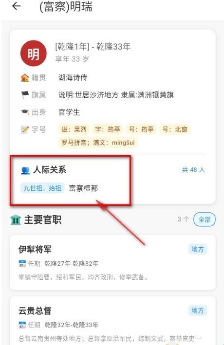 还能够获取历史人物的关系脉络,以便你可以获取历史人物的各种亲属关系;