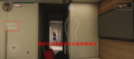 4、接下来会进入一段剧情,当然玩家也可以点击左下角的按钮跳过,正式进入游戏后,玩家可以在设置中更改旋转敏感度;然后就会出现游戏的目标,玩家需要根据这个目标来完成;