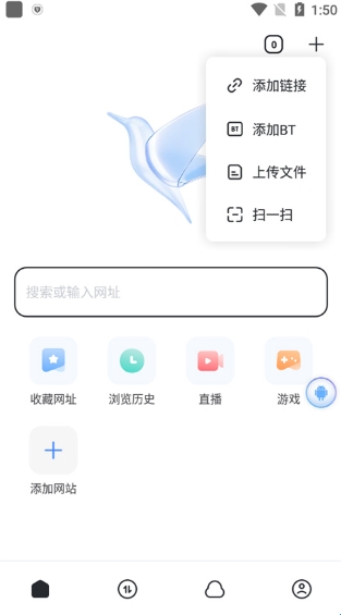 打开迅雷手机版,点击右上角“+”,普通下载直接添加链接;