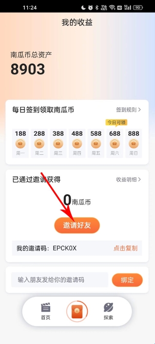 根据软件发布的任务,每日签到或者邀请好友,都会获得南瓜币。