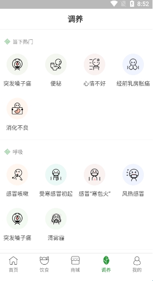 4、应用中有不同身体状况的调理方案,用户可以找到自己需要的快速了解;
