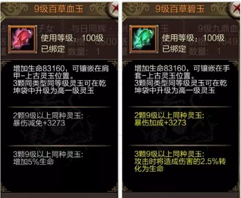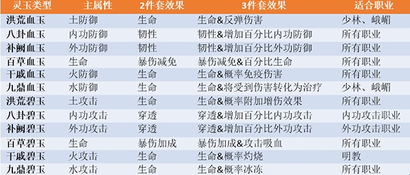 每种灵玉的主属性和套装属性各不相同,玩家可选择适合自己养成方向的。