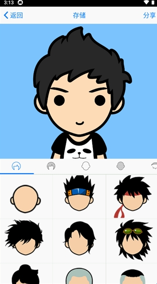 接下就是你设置你喜欢的萌图样子,通过左右滑动页面可切换类别,比如发型、发色、脸型、肤色、眉毛这些基本的制作动漫头像所需要的素材。