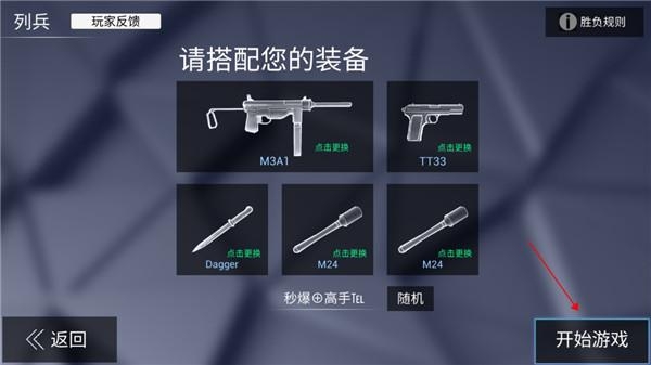 1、游戏开始可以先搭配你的武器,准备好了后点击下方的开始游戏。