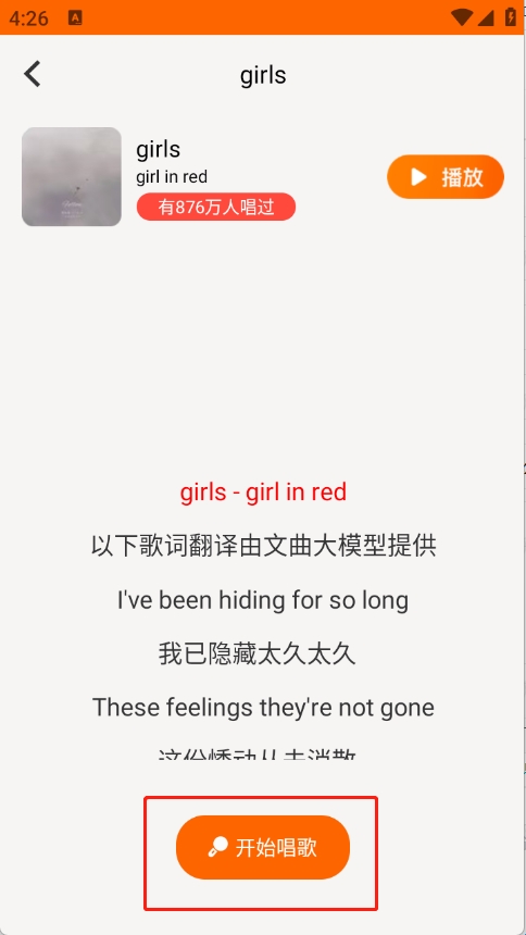 3、点击想唱的歌曲进入点击“开始演唱”。