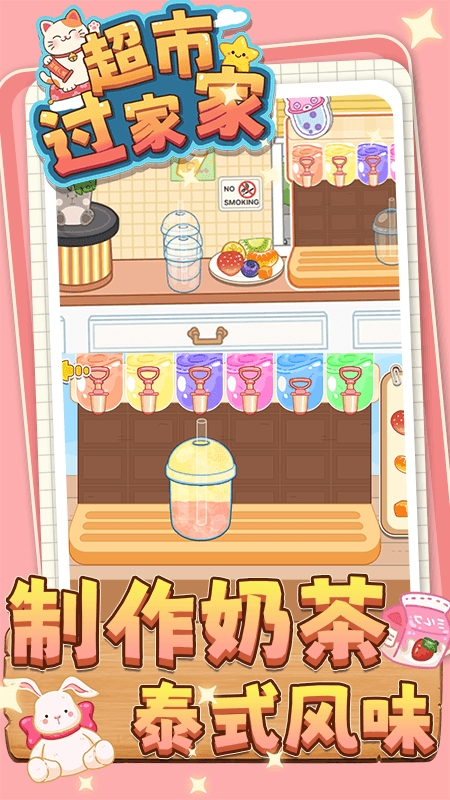 超市过家家是一款非常好玩的经营模拟类游戏,在这款游戏中玩家扮演一位超市的经营者,需要根据顾客的需求为其制作美味的奶茶、寿司,挑选合适的服装搭配,满足顾客的购物需求,获得金币收益,玩家可以用所获得的收益装扮超市,从而吸引更多的顾客前来购物。游戏的玩法多样,内容丰富,感兴趣的朋友们快来下载吧。