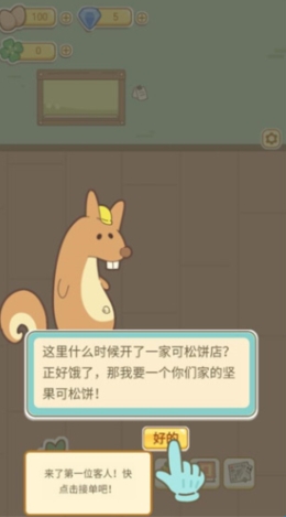 1、下载并安装本站提供的萌鸡烤饼店游戏,进入迎接你的第一位客人吧,点击接单