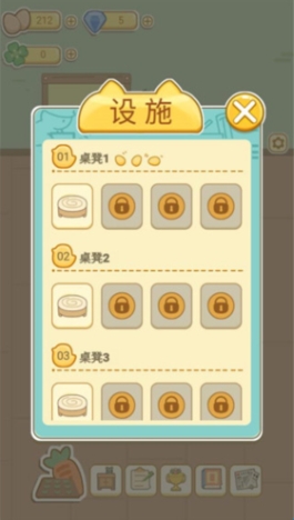 5、利用金币收益,你也还可以解锁更多的桌凳来进行店铺装饰