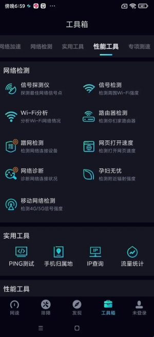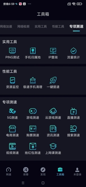 测速:实时测试手机网络速度,2G、3G、4G、Wi-Fi均可选择。