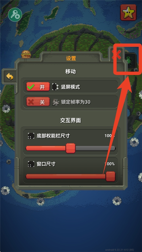 3、进入设置页面后会有一些基础的游戏设置,点击左上角的【汉堡】十一下,不想数点了多少下的小伙伴可以疯狂点击,多点几下就行。