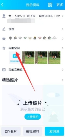 2、选择我的QQ空间,进入我的资料主页界面,继续点击我的空间。