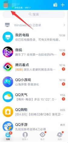 1、首先打开手机qq软件,进入后点击左上角的头像,唤醒设置栏后,再次点击头像。