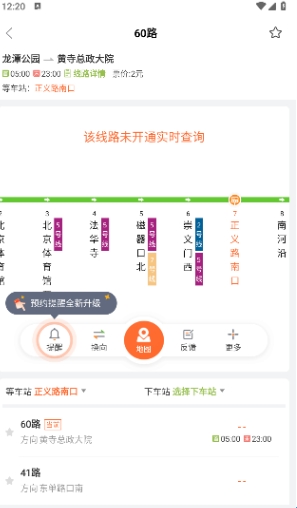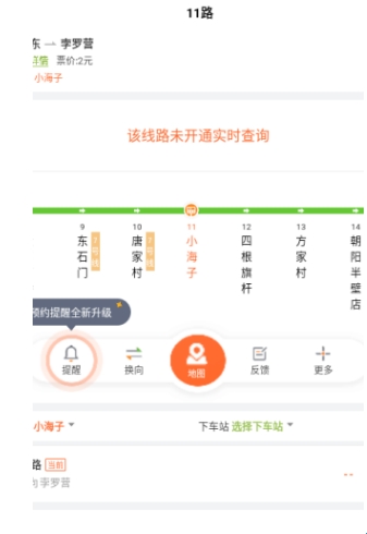 按线路查询属于比较模糊的查询,在界面输入目的地,就会出现所有车站的实时位置,同时可以通过地图看到车辆所在位置,选择其中一条线路,即可知道这条线路的所有站点。