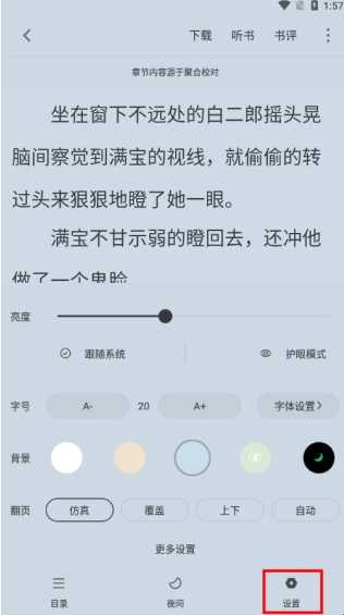 点击设置可以对阅读页面进行设置;