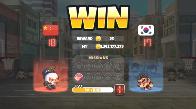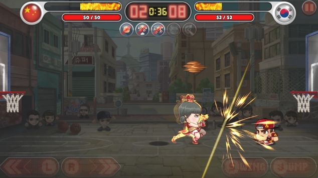 从韩国的火焰投篮手到英国的幽灵船长,游戏中有来自各个国家的球员及对手可供选择,目前游戏中上线了12个富有个性的角色和超能投篮。游戏采用了横版2D画面呈现方式,主角是一个只有二身头的卡通娃娃形象,硕大的头部似乎在强调这个篮球比赛用到的可是头顶。同样由于这样的设计,人物在比赛中五官表情也可以清晰的表现,随着比赛越发激烈,甚至连选手受伤的细节都可以看清楚。