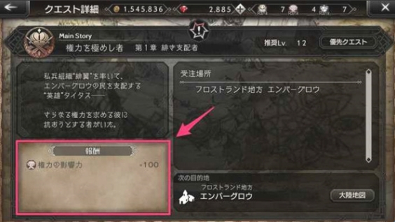 1、剧情关卡、功绩(成就)、NPC等游戏内各种内容都被设置有影响力。影响力分为财富、权力、名声3种。同时影响力有等级设置,剧情关卡通关、达成功绩(成就)可获得旅团影响力,达到一定值之后等级上升。角色也各自设置有影响力,同时队伍中编入角色的影响力合计值为队伍影响力,队伍影响力对讨伐依赖的报酬等有影响,角色影响力可通过技能习得提高。