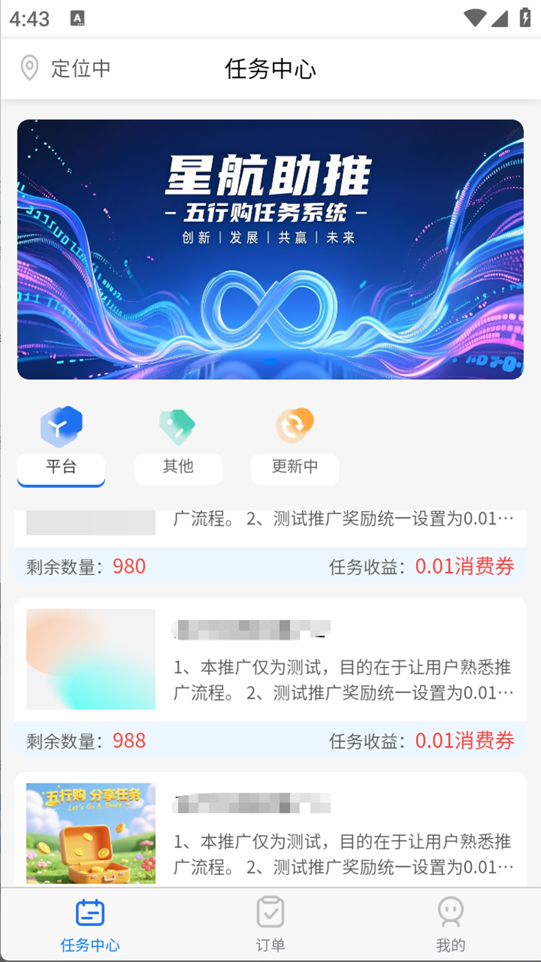 易助推app是一款创新的一站式任务奖励软件,致力于为用户创造实惠,为线下商家赋能引流。用户可通过完成平台内的多样化任务轻松获取丰厚的消费券奖励。所得消费券可直接在五行购平台合作的线下商家消费时抵扣现金,让优惠真正落到实处。