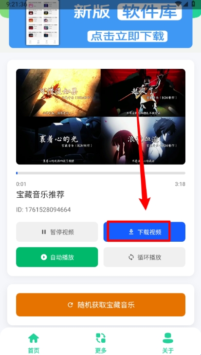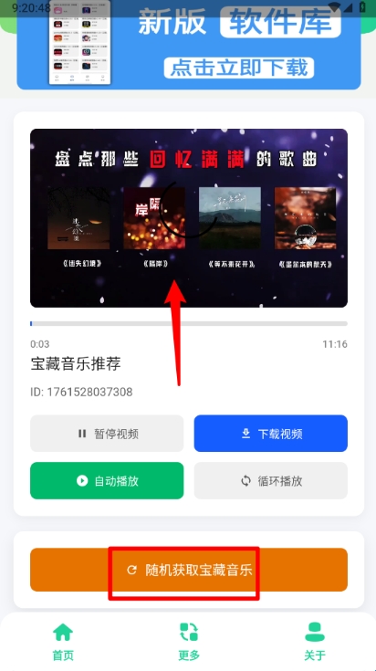 在主页即可播放对应的音乐,点击"随机获取宝藏音乐"。