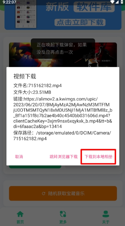 弹出提示框,点击"下载到本地相册"。