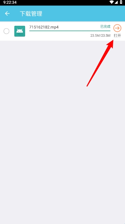 最后在下载管理页面可以进行查看下载进度,完成后点击"打开"即可播放。