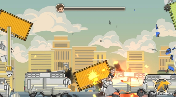4、坚持一段时间后就会进入boss战,滑动屏幕可以移动角色躲避高楼,击中boss可以减少血量,当血量为零时就可以通关。