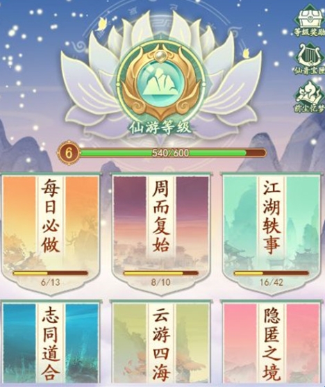 将主线推进到【升级天赋】后,就可以解锁【仙游】这个福利重地!最快获取主角升级经验的方式——就是【仙游】中的【每日必做】任务,另外【仙游】中的其他任务,只要动动手指就可以领取大量奖励,籼米们这个升级秘诀可一定要重视。