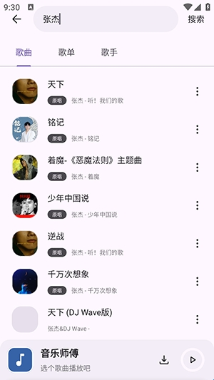 2、任意的进行音乐资源搜索,得到你兴趣的音乐作品内容,可以收获满意收听;