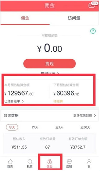 在首页下方"佣金",可查看您的收入及推广数据情况;