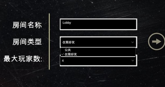 设置房间,包括房间名称,房间类型(公开or仅好友)以及房间最大人数(2-4人),点击下一步;