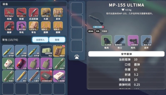 4、MP155ULTIMA,近距离很厉害的一把武器,子弹也便宜,适合在狭小地区使用,类似实验室这种地图。缺点是打不了太远。
