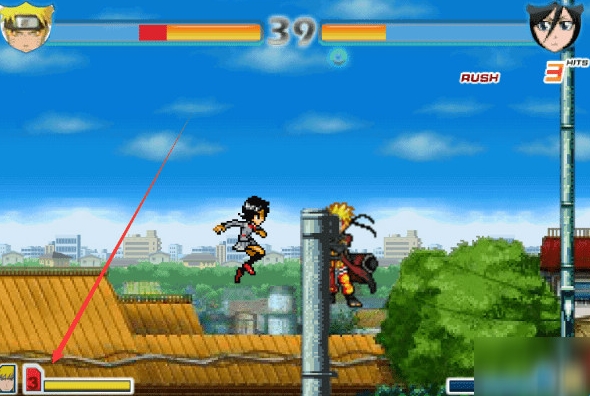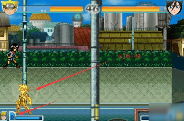 能量满3格后,同时按J键和K键,即可变身成为金色鸣人。