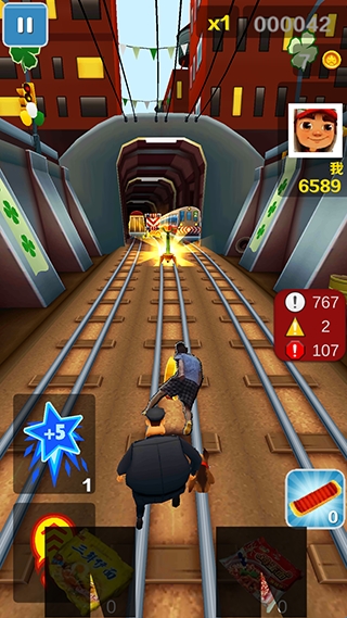 4、随机应变沉着应对,学会默数滑板的消失时间,以及优化跑酷路线(何时放开的捡道具、金币,何时选择安全路线为主)不要顾此失彼。