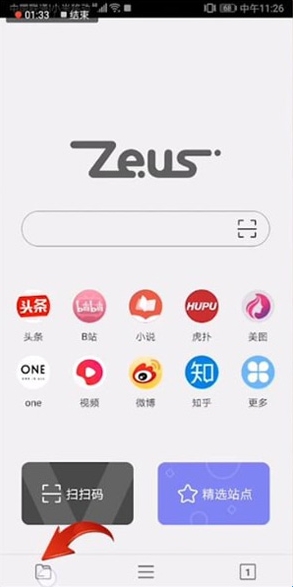 首先在手机端打开宙斯浏览器,并点击视频,打开视频网站。如图