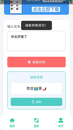 1、抽象话整句:输入普通话语,一键转换抽象语言文本内容。