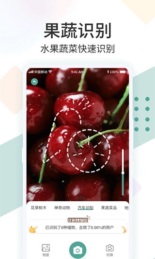 1、支持识别的内容非常的丰富,包含了花草识别、动物识别、汽车识别、文字识别等等;
