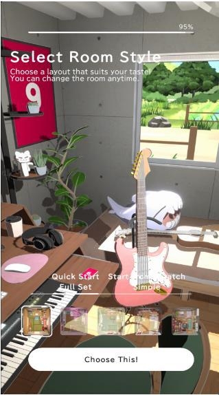 3、接下来,从五种不同风格的房间中挑选一个喜欢的场景,正式进入游戏后,你会看到角色正静坐在桌前。
