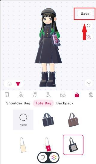4、点击如图所示的衣服的样式,搭配服饰,搭配完成后点击右上角的SAVE,进行保存