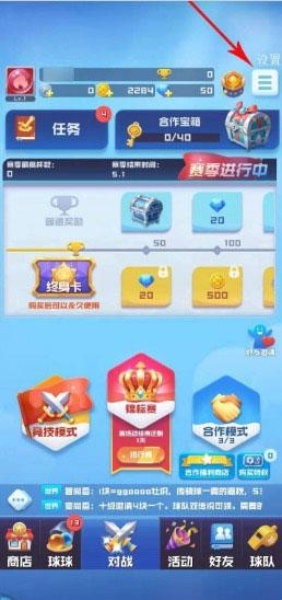 1、打开球球英雄应用宝版游戏,点击进入设置界面;