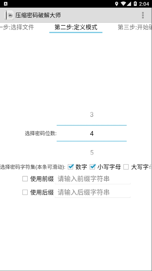 2、选择密码位数,密码组成数字和小写字母是否需要前后缀