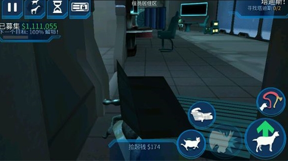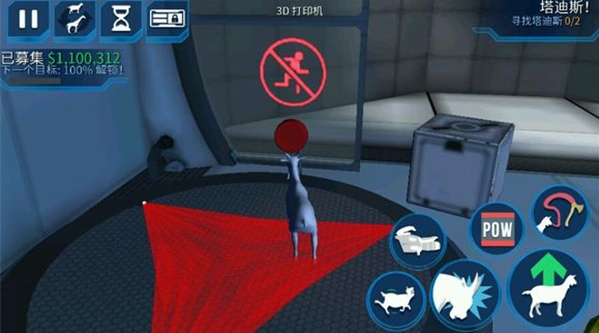2、游戏中玩家需要操控疯羊不断的募集资金,而很多Npc的头顶上都有一个金钱的标志,玩家将他们顶撞之后就可以收集。