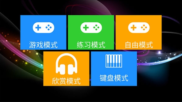 游戏分为五个模式,分别是:新手模式,游戏模式,自由模式,钢琴键盘模式和欣赏模式。