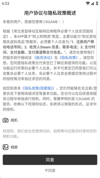 1、阅读用户协议和隐私政策概述之后点击同意;